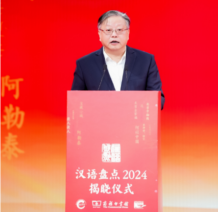 商務(wù)印書館黨委書記、執(zhí)行董事顧青在“漢語盤點2024”年度字詞揭曉儀式上致辭。新華網(wǎng) 發(fā)