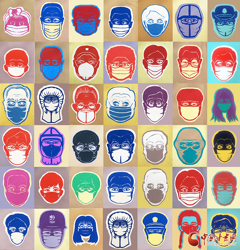 “在新冠肺炎疫情事件中,警察、醫(yī)護(hù)、新聞工作者,鄉(xiāng)鎮(zhèn)、街道社區(qū)工作人員以及街上擦肩而過(guò)的路人,他們的面孔被口罩遮蓋著,但口罩上的眼睛既靈動(dòng)又有故事,每個(gè)眼神都充滿了力量,我就萌發(fā)了用剪紙的形式,來(lái)呈現(xiàn)人物眼神和個(gè)性的想法。”何霞告訴記者,戰(zhàn)“疫”人物系列作品的名稱初定為《平等》。