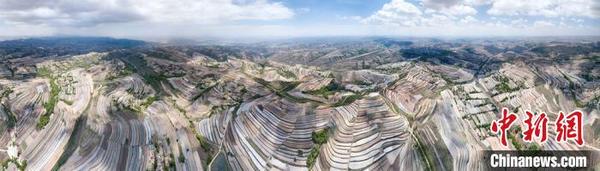 5月14日,甘肅省定西市安定區(qū)梯田廣袤,如同“五線譜”纏繞在黃土高原。定西市位于黃土高原丘陵溝壑地區(qū),是一個生態(tài)環(huán)境十分脆弱的地方。多年來,定西人堅持在生態(tài)文明和梯田建設上下功夫,總結并開發(fā)多種治理模式,在生態(tài)得以改善的同時,還產(chǎn)生經(jīng)濟效益。