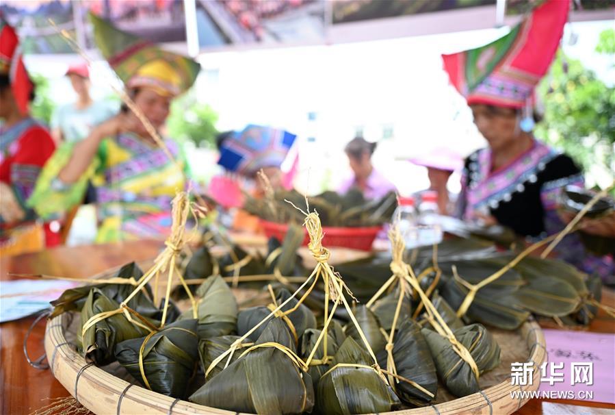 6月22日,在廣西柳州市柳江區(qū)進(jìn)德鎮(zhèn)泗浪村紅花屯,村民展示剛包好的粽子。端午節(jié)將至,各地舉辦包粽子比賽、制作香囊等民俗活動(dòng),感受傳統(tǒng)節(jié)日的魅力。新華社發(fā)(黎寒池 攝)