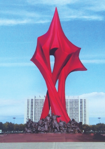 內(nèi)蒙古興安盟是新中國建立的第一個(gè)紅色革命自治區(qū),建于1947年,而位于興安盟行署前烏蘭浩特中心公園廣場(chǎng)就有一座何鄂先生創(chuàng)作的不銹鋼城雕《焰紅興安》,是興安盟獨(dú)具特色的標(biāo)志性紅色建筑。