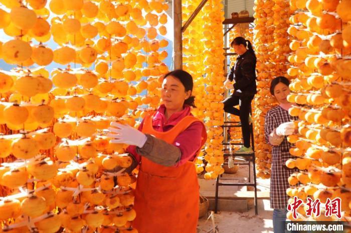 資料圖:金黃的柿子掛滿了房前屋后,一片黃澄澄金燦燦。 王小勇 攝