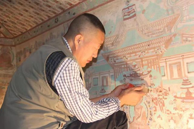 1990年,李云鶴的兒子李波同樣成為了敦煌研究院的文物修復(fù)師。對(duì)于生于敦煌、長(zhǎng)于敦煌的李波而言,回到敦煌修壁畫是一件再自然不過的事情,“家里有一位修壁畫的父親,這對(duì)我的影響是極大的。而且這里是我的故鄉(xiāng),我對(duì)敦煌對(duì)莫高窟,有感情也有責(zé)任。”