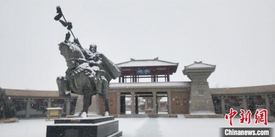 雪落敦煌陽(yáng)關(guān)景區(qū)?!⊥醣筱y 攝