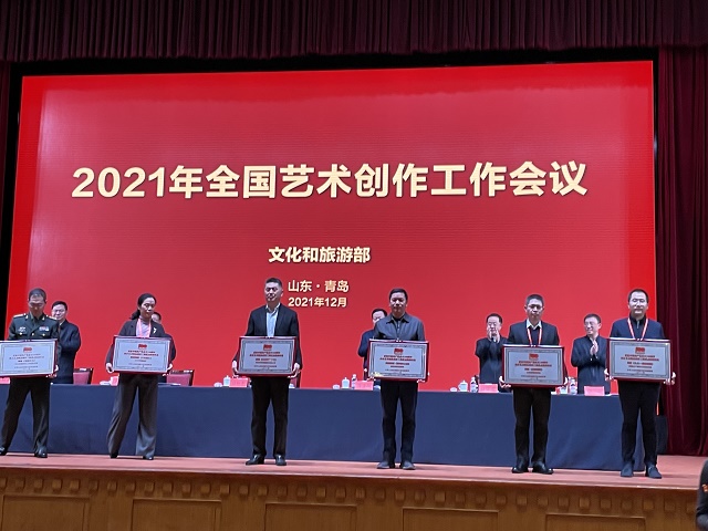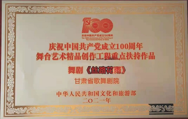 中國甘肅網(wǎng)12月19日訊 12月18日,文化和旅游部在山東省青島市召開的“2021年全國藝術(shù)創(chuàng)作工作會(huì)議”上,發(fā)布了“慶祝中國共產(chǎn)黨成立100周年舞臺(tái)藝術(shù)精品創(chuàng)作工程”入選名單,頒發(fā)了“慶祝中國共產(chǎn)黨成立100周年舞臺(tái)藝術(shù)精品創(chuàng)作工程獎(jiǎng)牌”。甘肅省文化和旅游廳遴選推薦的舞劇《絲路花雨》《大夢敦煌》《彩虹之路》、隴劇《官鵝情歌》、小品《你笑起來真好看》等5部舞臺(tái)藝術(shù)精品,經(jīng)文旅部評(píng)審正式入選“舞臺(tái)藝術(shù)精品創(chuàng)作工程重點(diǎn)扶持作品”。甘肅省歌舞劇院創(chuàng)排的舞劇《絲路花雨》作為12家“百年百部”工程受獎(jiǎng)單位在全國藝術(shù)創(chuàng)作工作會(huì)議上接受獎(jiǎng)牌和榮譽(yù)證書,甘肅省文旅廳、山東省文旅廳等參會(huì)代表12家領(lǐng)獎(jiǎng)單位上臺(tái)領(lǐng)獎(jiǎng),充分展現(xiàn)了文旅部對甘肅省入選作品質(zhì)量及組織工作的高度肯定。