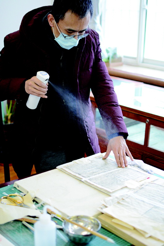 1月5日,記者來到市圖書館古籍部,工作人員正在對破損古籍進(jìn)行全手工修復(fù)。