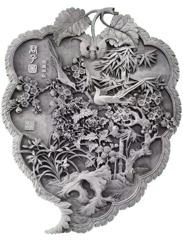 端詳沈占偉的作品,有栩栩如生的花鳥,大氣磅礴的山川,活靈活現(xiàn)的人物,能想到的體裁應有盡有。可以說遠看端莊大氣,近看細節(jié)精湛,尤其是對動植物的刻畫,仿佛通過他的刻刀賦予了生命,在原本冰冷的磚塊上呼之欲出,生機勃勃。難能可貴的是,他并不會限制自己的創(chuàng)作體裁,每一幅作品都是匠心之作,都傾盡了他的心血。