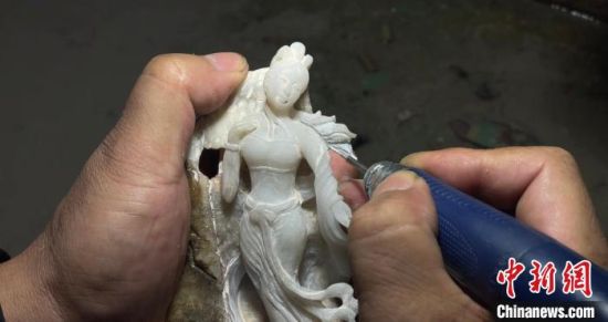 甘肅玉雕手藝人“俏色”雕出翩舞飛天