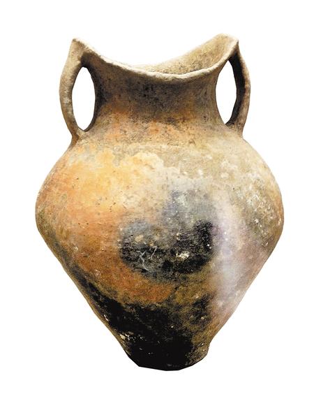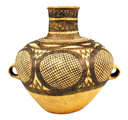 馬家窯文化半山類型圓圈網(wǎng)格紋雙耳彩陶罐