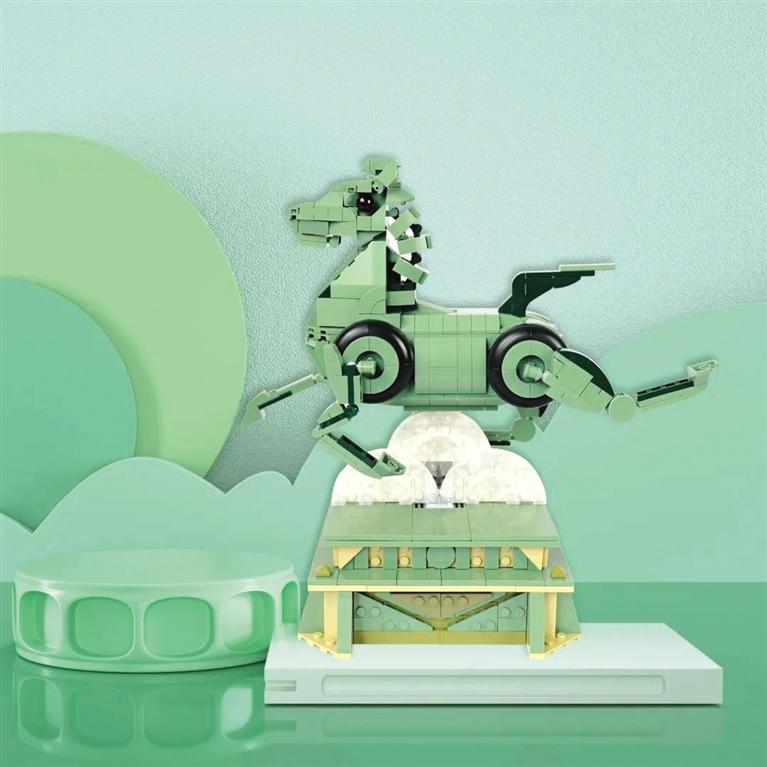 中國(guó)甘肅網(wǎng)6月23日訊 據(jù)蘭州晚報(bào)報(bào)道 在萬物皆可“盤”的世界里,素來只有想不到?jīng)]有做不到。近日,由甘肅省博物館推出的首款銅奔馬立體積木再次“出圈”,成為年輕人愛不釋手爭(zhēng)相“盤”玩的文創(chuàng)對(duì)象。