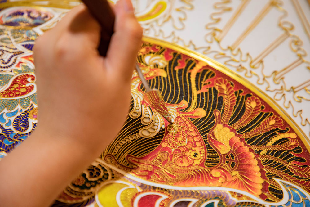 此后30多年,李海明不斷傳承創(chuàng)新,將排絲、壘絲、螺旋絲、柱狀絲等鑲嵌技法引入掐絲琺瑯藝術(shù),利用100多種基礎(chǔ)琺瑯釉料調(diào)制出4000多種過渡色及配色,攻克了琺瑯壁畫釉料脫落的難題,提升了琺瑯壁畫作品的藝術(shù)價值和收藏價值。截至目前,他共創(chuàng)作2000多幅掐絲琺瑯壁畫作品,先后30多次獲國家級和省級工藝美術(shù)類大賽金獎,部分作品被國家博物館收藏。
