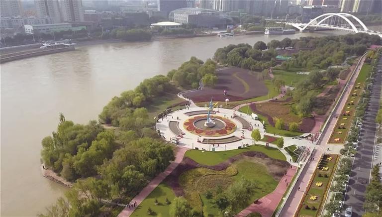 盛夏時(shí)節(jié),晴空萬里,漫步在黃河之濱,遠(yuǎn)處白塔巍巍、水車悠悠,鐵橋橫臥,游船穿行;眼前的黃河時(shí)而湍急、翻滾,浩浩蕩蕩奔流向前;時(shí)而寧靜、蜿蜒,如母親溫柔的懷抱,包容著城市的喧囂。景隨步移,公園、廣場、小游園、雕塑景觀等星羅棋布,形成了水天一色、詩情畫意的濱水空間。