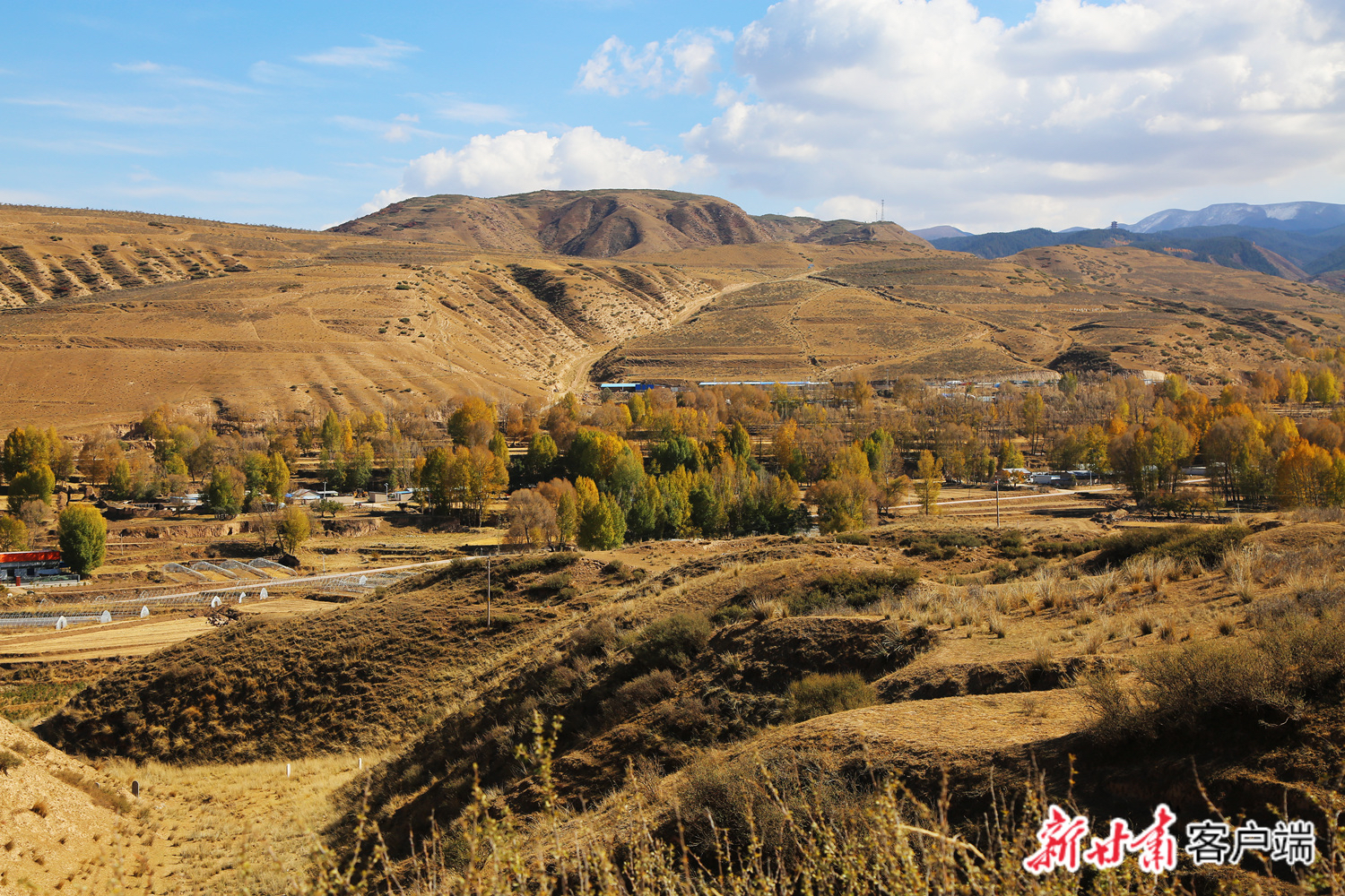 深秋時(shí)節(jié),位于焉支山下的山丹縣大馬營(yíng)鎮(zhèn)中河村色彩斑斕,景色如畫(huà)。