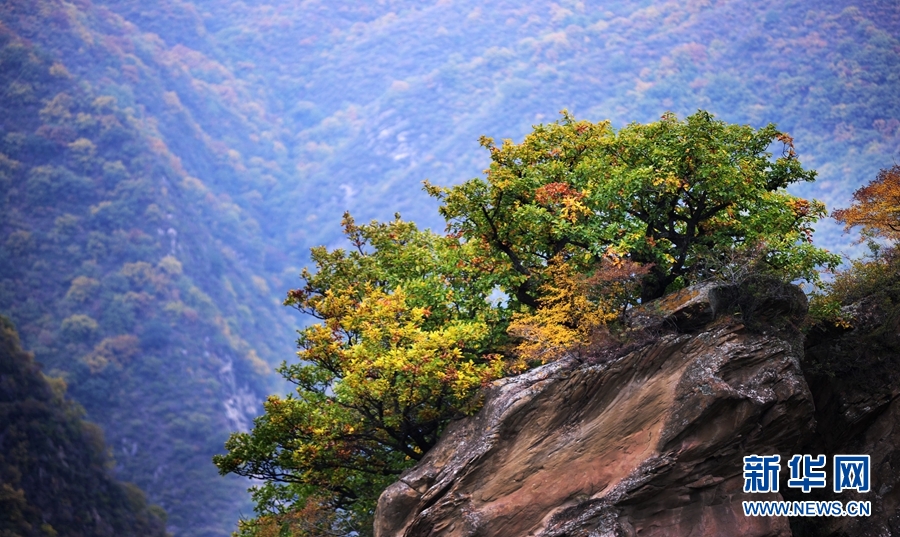 近日,甘肅省平?jīng)鍪谐缧趴h五龍山草木色彩繽紛,成為一道如詩如畫的美麗風景。(文字:王紅剛 拍攝:張志平)