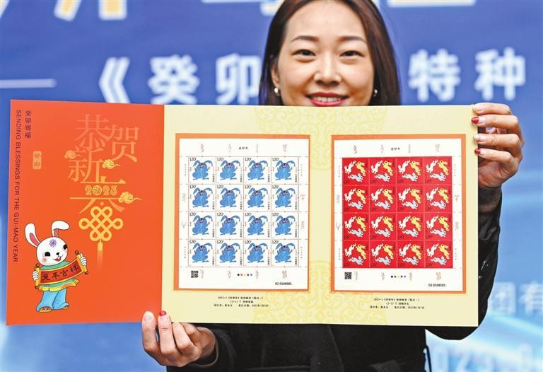 中國(guó)甘肅網(wǎng)1月6日訊 據(jù)蘭州晨報(bào)報(bào)道(奔流新聞·蘭州晨報(bào)記者王思璇)1月5日,中國(guó)郵政發(fā)行《癸卯年》特種郵票1套2枚,圖案內(nèi)容分別為:癸卯寄福、同圓共生,這套特種票是中國(guó)生肖郵票第四輪中的第八套。同日,《癸卯年》特種郵票在蘭州市各集郵營(yíng)業(yè)網(wǎng)點(diǎn)發(fā)售。