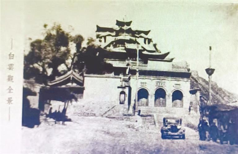 1935年5月,邵元沖考察西北途經(jīng)蘭州,專程赴崔家崖白云觀參訪?!段鞅彪S軺記》載:“依極壽山麓,建白云觀,高三百余級,黃流襟帶,榆柳成蔭,書長無事,凝坐其間,聆水聲潺湲,聽鳥語啾啁,亦足滌塵煩,消炎夏。”邵元沖為此特作《題崔家崖白云觀》詩曰:“玄都峙重崖,清磬林間響。俯瞰大河橫,寒流走混□。柳晚翠煙浮,閑云獨來往。”《西北攬勝》一書中,專門刊載兩幅崔家崖白云觀照片,照片說明曰:“北臨黃河,南接蘭山,形勢雄壯,殿宇倚坡上筑,宏麗精巧,且曲徑回廊,引人入勝,亦蘭垣名勝之一也。” 從老照片中可見,崔家崖白云觀依山而建,頗具氣勢,而且交通便利,邵元沖一行乘坐的小汽車可以直達(dá)觀前。