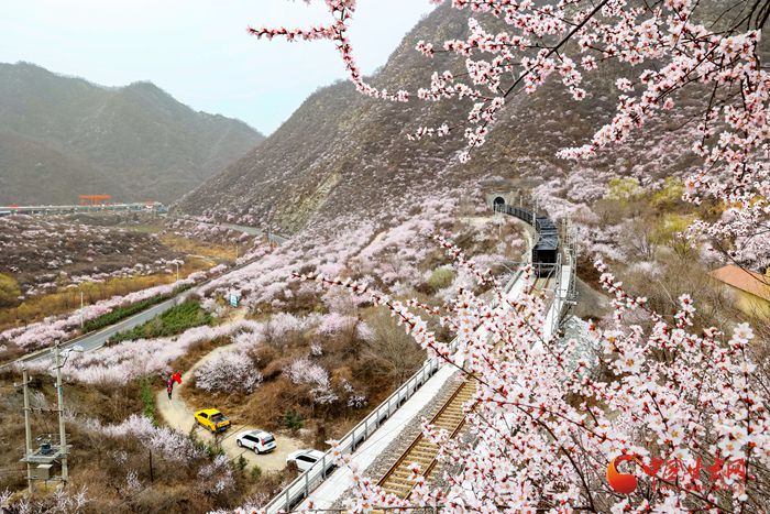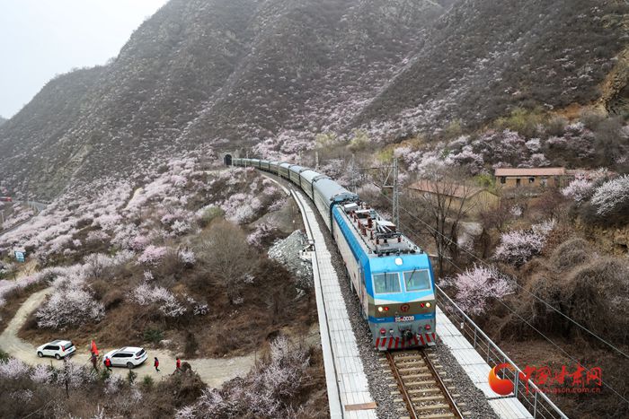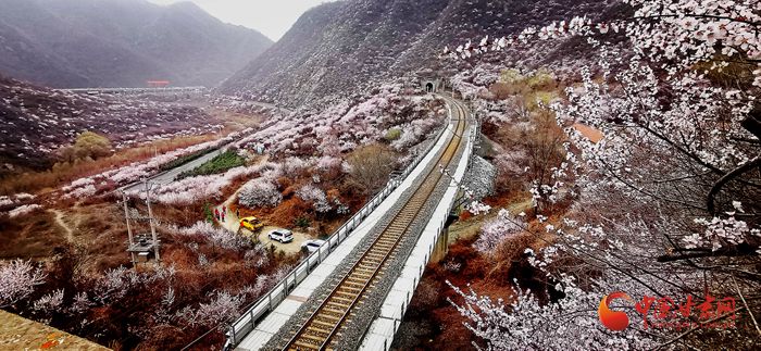 陽春三月,桃之夭夭。在崇信縣的漫山遍野上,朵朵桃花迎來盛放期。微風(fēng)吹來,暗香浮動。近看,朵朵嬌俏的桃花層層疊疊,錯落有致。遠看,漫山紅遍如霞似錦,爛漫壯觀。特別是一列列火車穿行而過,與桃花撞了個滿懷,奔向充滿希望的春天。
