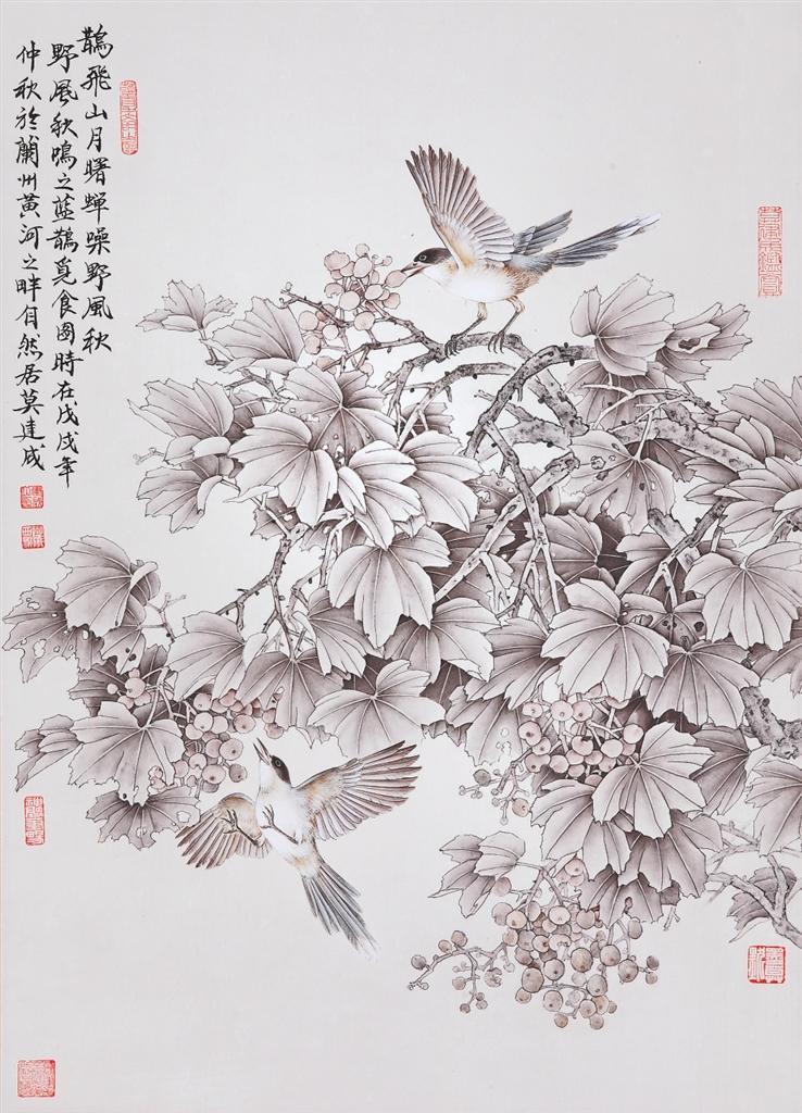 莫建成、莫曉松的花鳥畫藝術(shù)是在隴原大地的文脈浸染和敦煌藝術(shù)的熏陶滋養(yǎng)下,上下求索、靈苗自探的結(jié)晶,以其獨特的畫風,成為西北畫壇上一道亮麗的景觀。此次展覽展出兩位藝術(shù)家傾情創(chuàng)作的100多幅精品力作,將傳統(tǒng)積淀與時代審美相連接,實現(xiàn)了自然景觀與人文意象有機融合,展現(xiàn)了對西北大地的情愫、對優(yōu)秀傳統(tǒng)文化的重尋,體現(xiàn)出藝術(shù)家致力于中國“工筆花鳥畫傳承與發(fā)展”的深度思考與實踐。本版特選登其中部分作品,以饗讀者。——編者