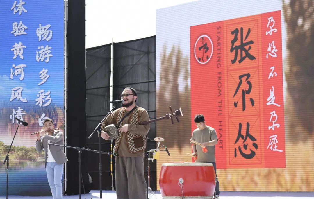 白銀市靖遠(yuǎn)籍民謠音樂(lè)人張尕慫和他的團(tuán)隊(duì)在旅游節(jié)上為觀眾演唱《沒有黃河我活不下》。多年來(lái),他始終堅(jiān)守初心,帶著作品向全國(guó)乃至全世界宣傳甘肅,宣傳家鄉(xiāng)白銀。喬麗霞 攝