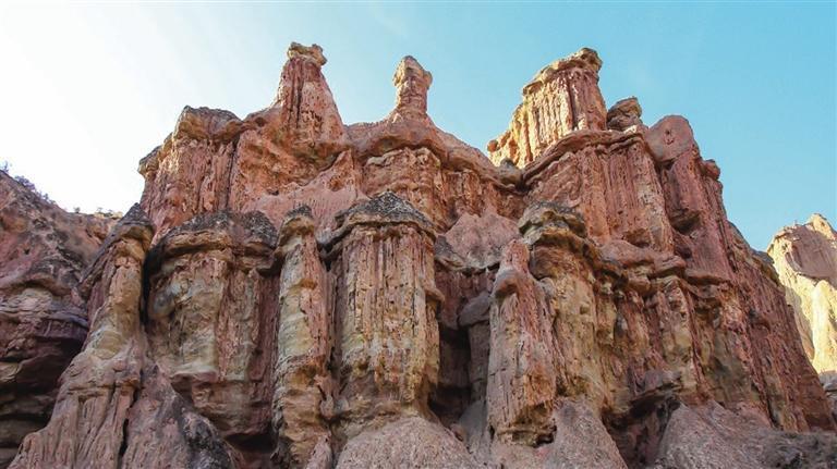 張掖土林地貌主要集中在該市肅南縣境內(nèi),平均海拔高度1700米左右,面積約20平方公里。土林發(fā)育齊全、類型多樣,從幼年時期的細溝土牙,到中青年期的圓盆土柱,直至成熟期的坡地殘柱,均有呈現(xiàn),完整地展示了土林地貌的形成與演化過程。