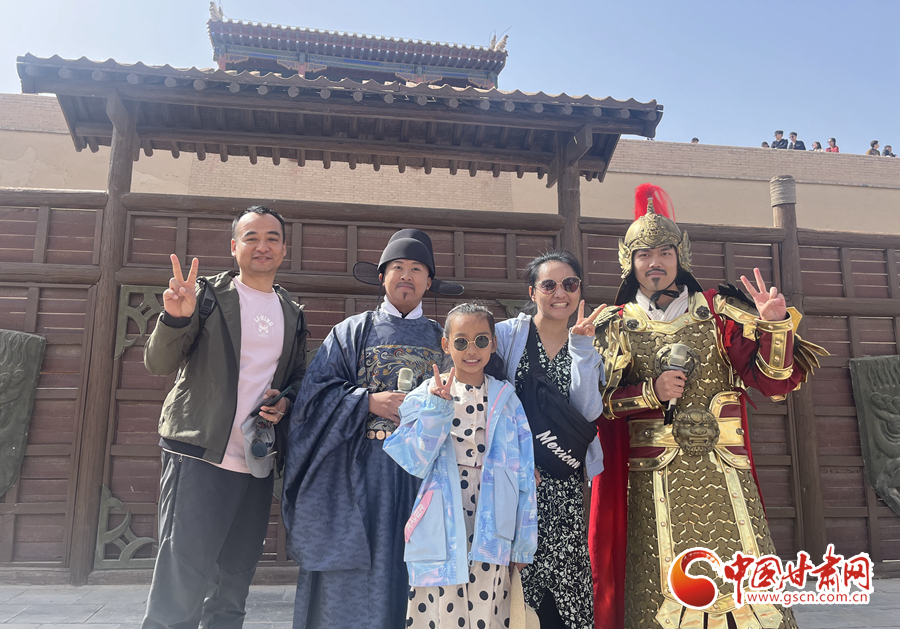 中國甘肅網5月3日訊(通訊員 陳楚)“開城,迎賓。”5月1日上午,在嘉峪關關城景區(qū),隨著號角聲響起,兩名門衛(wèi)士兵緩緩打開城門,來自全國各地的游客,隨著守門將軍的步伐,誓師出征,游客們置身歷史氛圍,仿佛回到古時的大漠邊關。