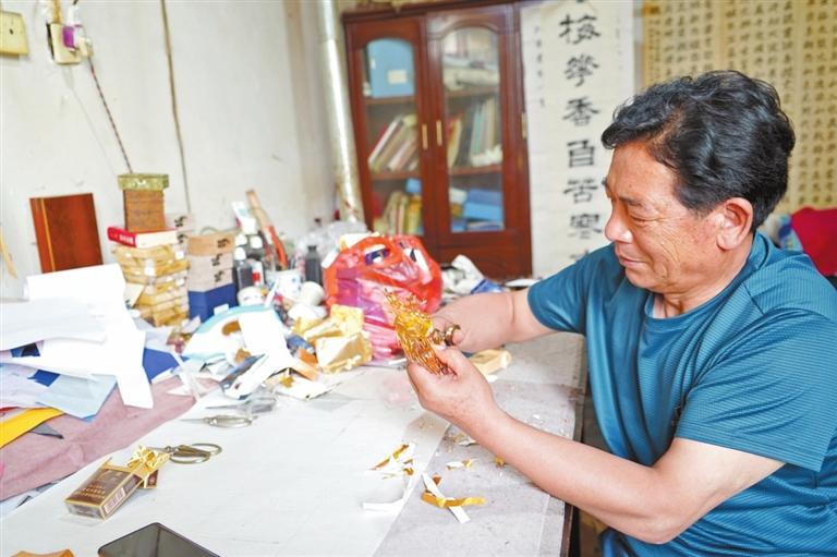 巧用廢棄錫箔紙 平?jīng)雒耖g藝人剪出“千梅圖”