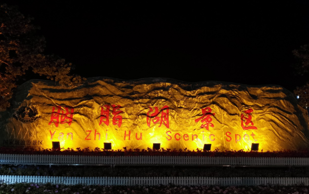胭脂湖畔采詩來,幻彩霓燈翠岫徊。