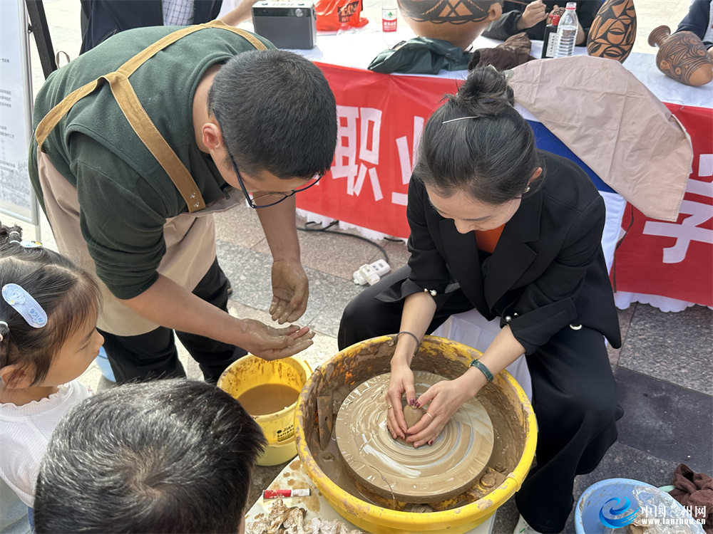 當日的活動中,蘭州職業(yè)技術(shù)學(xué)院非物質(zhì)文化遺產(chǎn)學(xué)院的師生現(xiàn)場展示蘭州刻葫蘆、慶陽剪紙、木版年畫、甘南藏族唐卡、泥板畫、甘肅彩陶、掐絲琺瑯畫等非遺技藝,吸引了很多市民見此情景駐足觀看。其中甘肅彩陶展示尤為引人注目,不少市民上手體驗,在學(xué)院同學(xué)的幫助下體驗非遺文化。市民張女士說:“這是我第一次體驗制作甘肅彩陶,讓人印象非常深刻,了解了古人是如何制作彩陶的,也讓我'沉浸式'感受到非遺文化的魅力。”