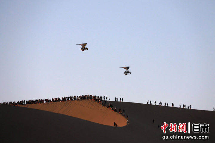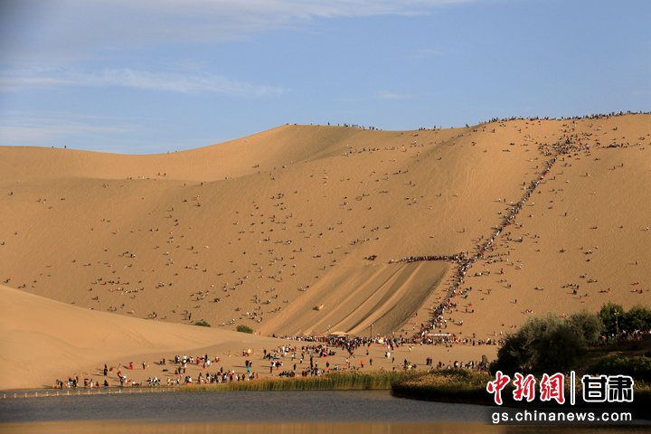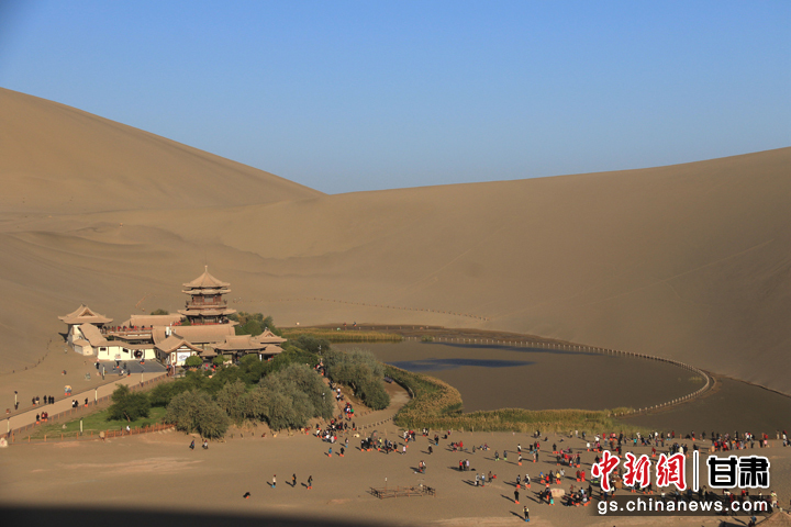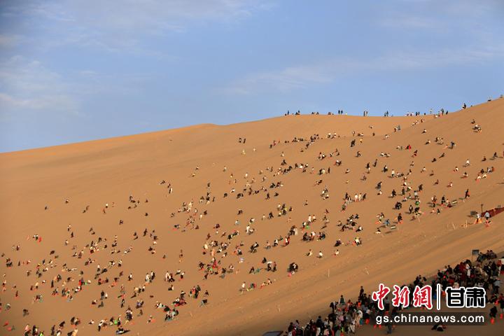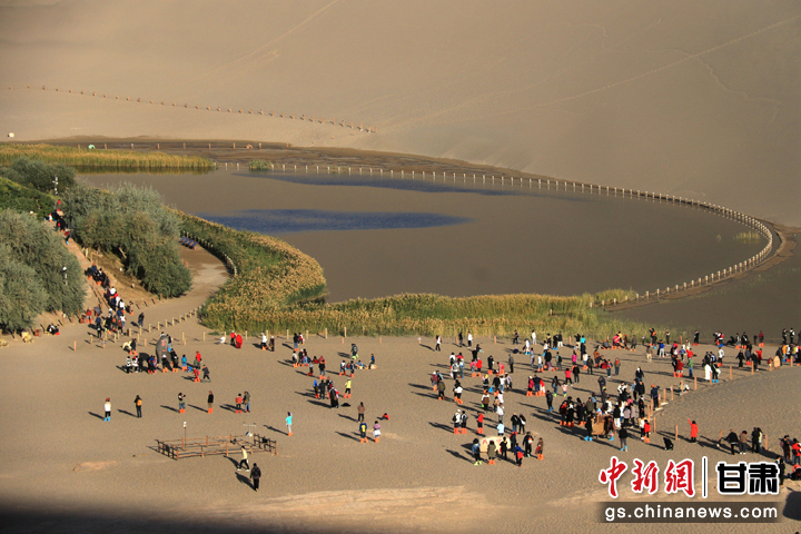 今年以來,甘肅省敦煌市旅游市場持續(xù)火熱。當(dāng)?shù)刂包c鳴沙山月牙泉在今年中秋國慶假期期間,累計接待游客首次突破300萬人次,比2019年同期增長35.5%,創(chuàng)歷史新高。(張曉亮 習(xí)剛)