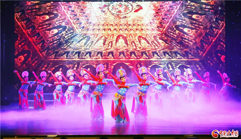 除了甘肅省民族歌舞團和西北民族大學(xué)舞蹈學(xué)院聯(lián)袂獻上的精彩節(jié)目外,當(dāng)晚,肅州區(qū)文化館還為觀眾奉獻了舞蹈《西域羯鼓》。據(jù)悉,羯鼓源自西域,狀似小鼓,兩面蒙皮,均可擊打,既能表現(xiàn)快速緊急或激烈的情緒,又可以用散淡悠長來營造靜謚雅致的氛圍。表演中,舞者著霓裳,帶搖冠、掛嚶珞,貼著金花的衣裙飄曳、巾帶飛舞,四周天花飛落,如夢如幻。該節(jié)目通過歡快的音樂、輕快的舞步、流暢的隊形變換等形式,展現(xiàn)了極具特色民族舞蹈風(fēng)格,也反映了隴原兒女團結(jié)奮進、昂揚向上的精神面貌。