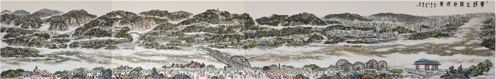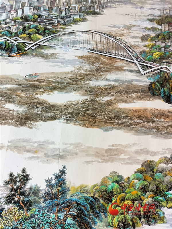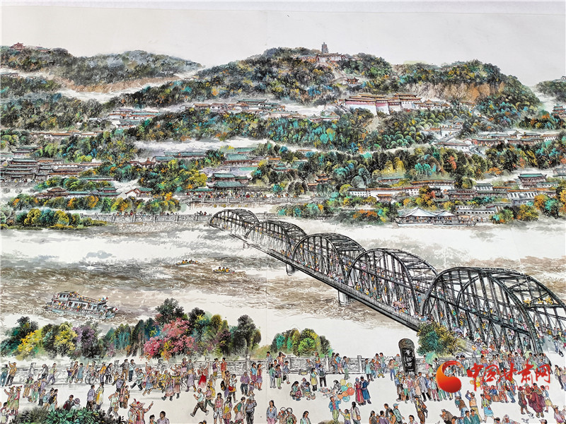 把蘭州畫給你看,山水城市蘭州在國畫里如何描繪?蘭州七中美術(shù)教師李建春用筆墨描繪了屬于蘭州的清明上河圖,長9.6米,寬1.46米的長卷囊括了黃河風(fēng)情線的山水,還有中山橋河、金雁黃河大橋巧妙切分畫面,讓蘭州的人文在虛與實(shí)中得到最好的釋放。