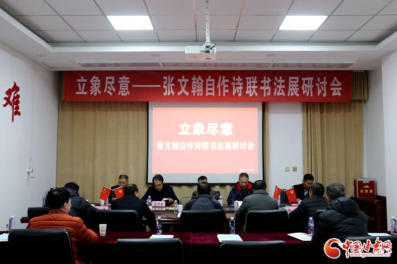 11月26日下午,“立象盡意——張文翰自作詩聯(lián)書法展研討會”在華夏文明導報社舉行。甘肅省委宣傳部文藝處處長李樂,中國作家協(xié)會會員、甘肅省作家協(xié)會副主席牛慶國,中國書法家協(xié)會會員,甘肅省書法家協(xié)會副主席張萬勝出席研討會,來自蘭州大學、西北師范大學的教授、學者20余人參加會議。