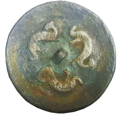 1981年出土于金川三角城遺址西崗墓群,為國(guó)家一級(jí)文物。直徑5厘米,鏡面上模鑄三條軀體蜿蜒的對(duì)稱(chēng)龍紋,三龍首尾相接,環(huán)繞鏡鈕一周,展現(xiàn)了春秋戰(zhàn)國(guó)時(shí)期金昌先民杰出的青銅鑄造工藝以及非凡想象力,現(xiàn)為金昌市博物館館標(biāo)。該文物是沙井文化青銅器的杰出代表,洋溢著濃郁的草原青銅文化特色,是中西方文化交流的典型物證。