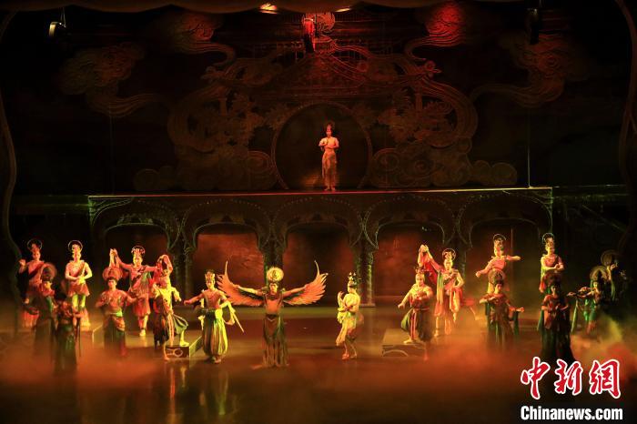 資料圖:2023年10月9日晚,演員在大型洞窟式沉浸體驗(yàn)劇《樂(lè)動(dòng)敦煌》中表演。張曉亮 攝