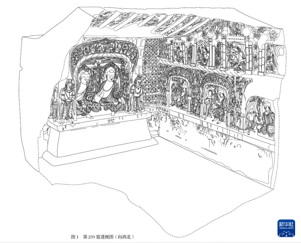 《莫高窟第256、257、259 窟考古報(bào)告》中第259窟透視圖。敦煌研究院供圖