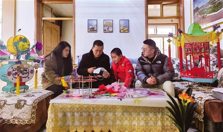 正月初十,記者走進(jìn)魏世發(fā)家中,院中一盞盞精美的花燈擺放有序,色彩鮮艷、栩栩如生,呈現(xiàn)出皋蘭傳統(tǒng)手工花燈技藝的魅力。朱榮亮是石洞小學(xué)二年級學(xué)生,一次偶然的機(jī)會接觸到什川花燈,便產(chǎn)生了濃厚的興趣。他說:“以前見到花燈我就非常喜歡,今天媽媽專程帶我來到魏爺爺家學(xué)做花燈,非常有趣。以后有機(jī)會,我會帶著對花燈感興趣的同學(xué)來魏爺爺家跟他學(xué)做花燈。”