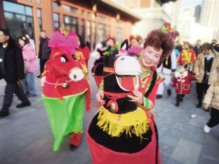 從臘月二十三開始,蘭寶平幾乎每天都要參加表演,與記者見面時,已是當(dāng)天她在蘭州老街的第四場表演。一天下來,她從東扭到西,出老街進廣場,每到一處都是人們歡樂的源泉和目光的焦點。