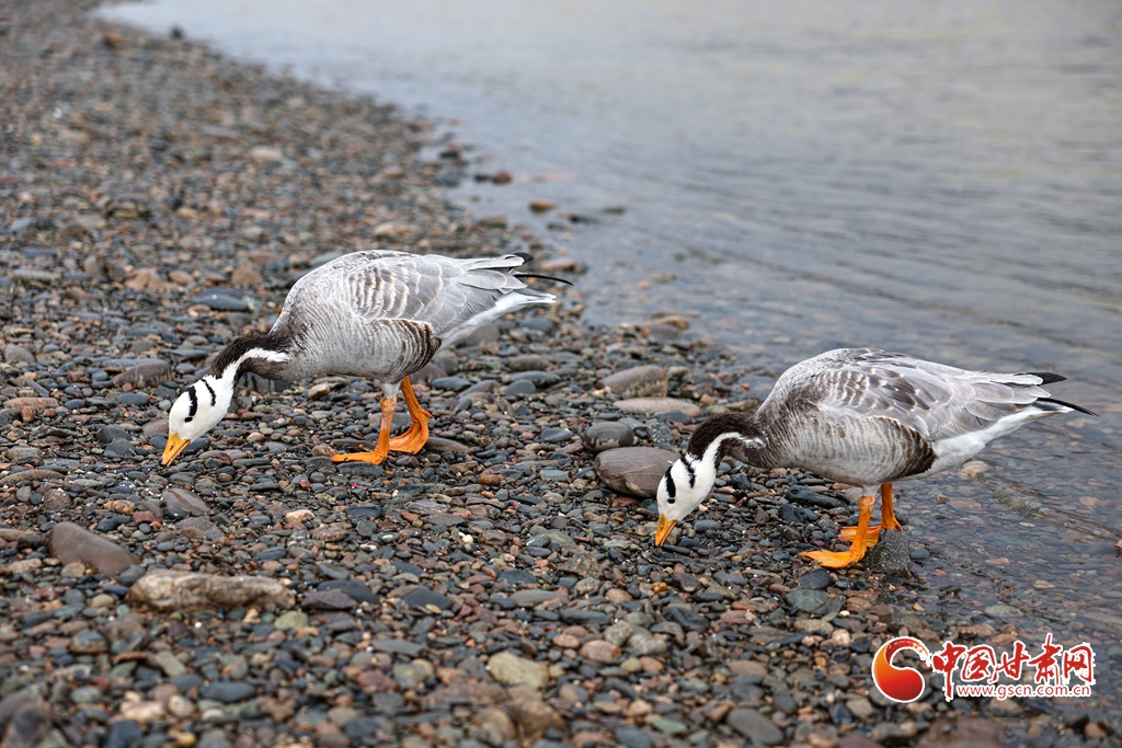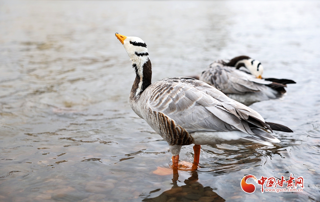 當(dāng)日,在蘭州市城關(guān)區(qū)黃河河畔,一對斑頭雁與市民溫馨相遇,吸引不少市民駐足投喂,拍照“打卡”。