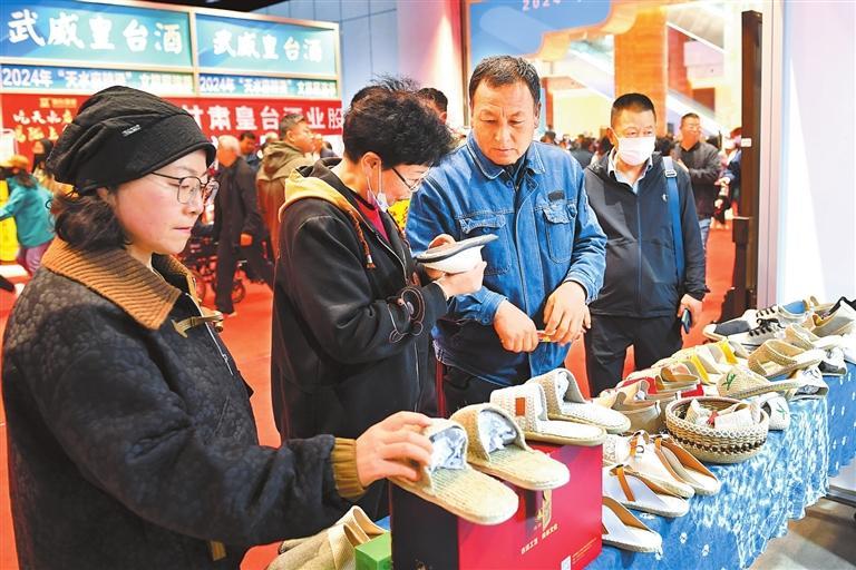 “沒想到一雙布鞋品質(zhì)能這么好,既能保留民族元素,又能兼顧時尚和實用,價格還不貴。”來自西安的游客劉雅楠拿起精致的麻鞋,摸了摸材質(zhì),仔細(xì)看了看上面的圖案說。聽到游客的詢問,工作人員笑盈盈地說:“這種鞋子是我們天水甘谷的非遺產(chǎn)品,每一雙鞋都是純手工制造,上面的圖案也是人工刺繡,每一雙都能體現(xiàn)天水藝術(shù)和甘谷文化的魅力。”