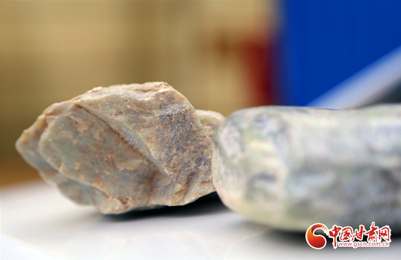 當(dāng)?shù)卮迕裣虿稍L(fǎng)團(tuán)展示了他在“玉山”下?lián)斓降膸讐K玉石,以及自己打磨制作的玉石掛件。大家逐塊端詳,馮玉雷激動(dòng)地說(shuō):“這就是最典型的馬銜山透閃石玉,可以進(jìn)入臨洮縣博物館作為標(biāo)本保存……”