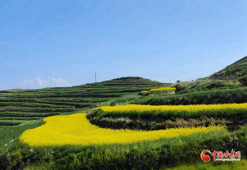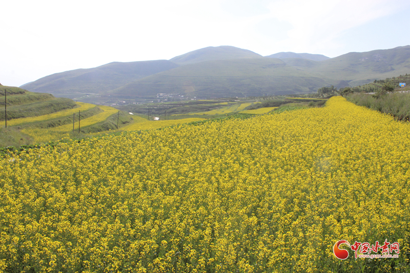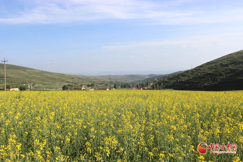 沿著普銀公路來到了被譽為“臨洮最北面的鄉(xiāng)村”的上營瓦窯灘村。這是個寧靜美麗的小山村,秋高氣爽,這里有一大片黃澄澄的油菜花地。一下車,站在普銀公路邊上,一眼望去,田間地頭,成片的油菜花與藍(lán)天白云青山交相輝映,村舍藏匿于廣闊的油菜花叢中,蜜蜂、蝴蝶在花叢中翩翩起舞,恰似一幅美麗的田園畫卷。