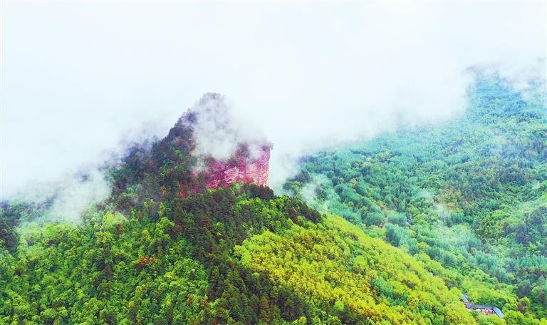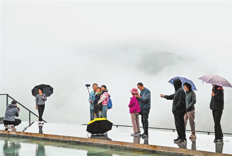 在綿綿細(xì)雨中,麥積奇峰時(shí)隱時(shí)現(xiàn),吸引游客慕名而來感受“麥積煙雨”的魅力。新甘肅·甘肅日報(bào)記者 田 蹊