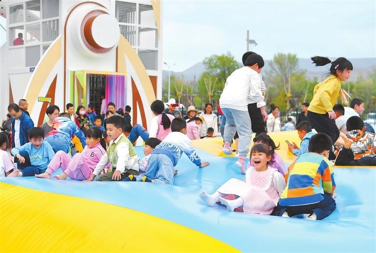 孩子們在洮河如意灣親子樂園功能區(qū)快樂玩耍。新甘肅·甘肅日報(bào)記者 馬伊星