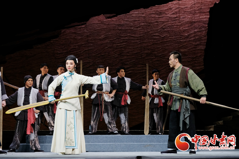 在唱腔設(shè)計(jì)上,該劇既有傳統(tǒng)的保留,也有創(chuàng)新的嘗試。在隴東老道情的基礎(chǔ)上,通過(guò)音樂(lè)和配器的創(chuàng)新,提升了音樂(lè)的張力和表現(xiàn)力。現(xiàn)場(chǎng)演出采用了民族管弦樂(lè)隊(duì)伴奏,使音樂(lè)更具交響性,更加豐富多彩,這也是該劇音樂(lè)方面的最大創(chuàng)新?! ?/p>