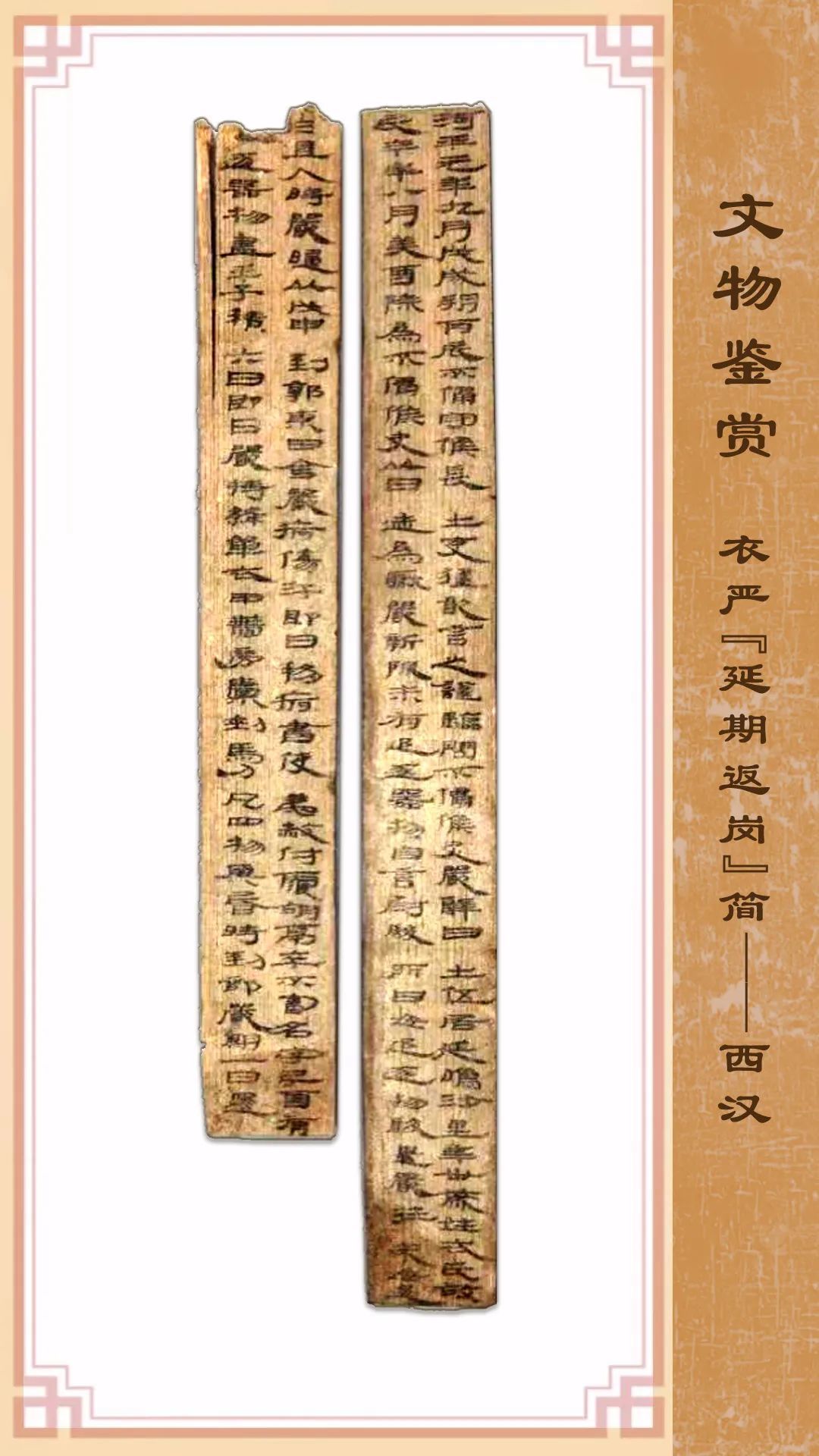 此簡(jiǎn)于1974年在甲渠候官遺址第59號(hào)探方出土,松木材質(zhì),共兩枚簡(jiǎn)。首枚內(nèi)容完整,23厘米長(zhǎng),2.5厘米寬,0.4厘米厚;另一枚上端略有殘斷,20厘米長(zhǎng),2.6厘米寬,0.4厘米厚。墨跡清晰,標(biāo)準(zhǔn)漢隸書寫,流暢自然,結(jié)構(gòu)工整,是一份案劾文書。