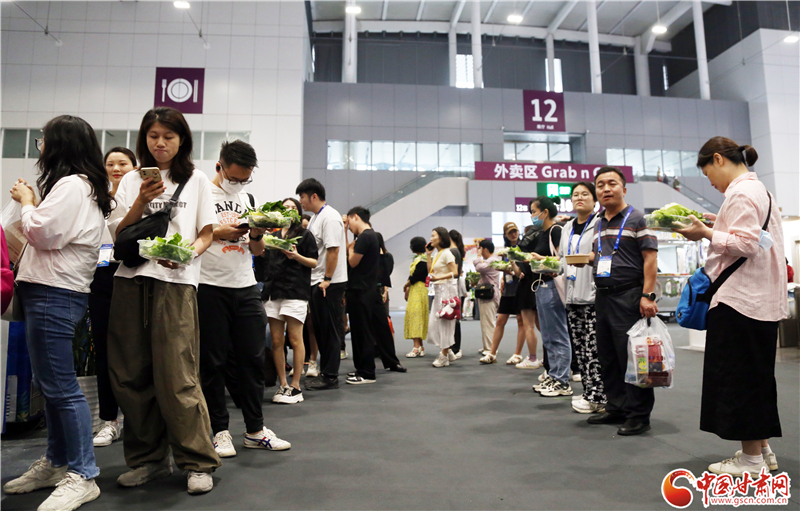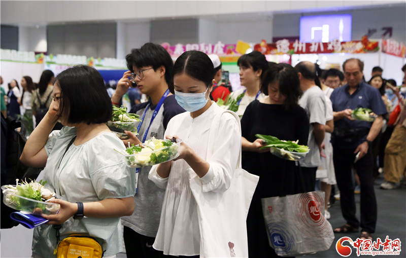 記者在現(xiàn)場(chǎng)看到,前往蘭州牛肉面、天水麻辣燙兩個(gè)展區(qū)品嘗美食的游客絡(luò)繹不絕。特別是在天水麻辣燙展區(qū),端著裝有各類蔬菜菜盆的食客排起了長隊(duì),紛紛翹首以盼,期待蔬菜下鍋,一嘗“麻”“辣”美味。