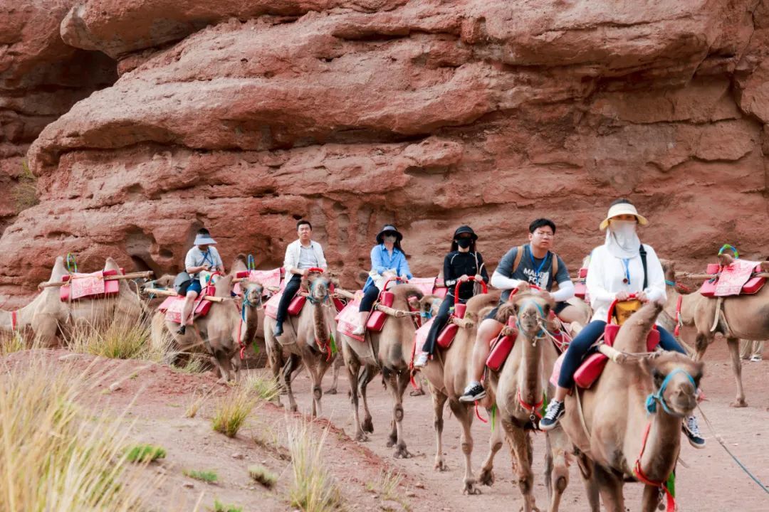 在甘州區(qū)平山湖大峽谷,采風團成員乘坐越野車進入夢幻大峽谷谷底,在藍天白云下,縱橫的溝壑、林立的群峰、幽靜的森林、蒼茫的戈壁、多彩的民俗讓采風團成員嘆為觀止。來自福建的微博三百萬大V張文圖說:“我已經(jīng)是第三次來張掖,此刻騎著駱駝踏入峽谷,抬頭看那高聳的崖壁帶來的震撼感瞬間將我包圍。沿著峽谷前行,每一步都充滿驚喜,太讓人驚嘆了。”“這次采風活動為我們搭建了很好的交流平臺,特別是張掖獨特的地貌和優(yōu)美的自然風光,都是很好的攝影素材,希望大家在這里收獲滿滿!”來自飛翔旅行的曹偉說。