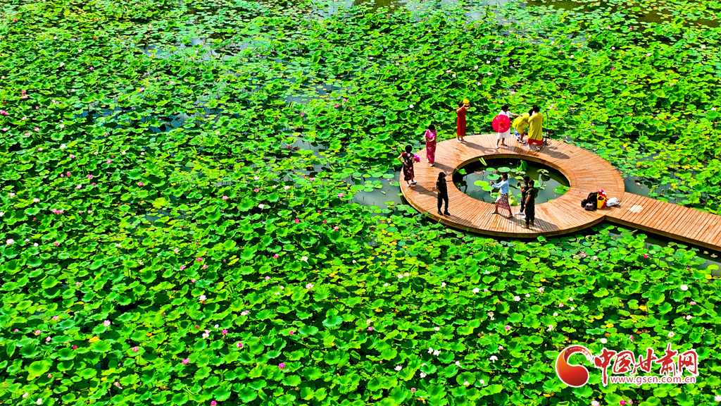 6月30日,雨后天晴的甘肅省張掖國家濕地公園碧水藍(lán)天、綠意盎然,荷塘里的荷花相繼綻放,處處呈現(xiàn)出蓬勃生機,眾多游客和市民在葦溪、湖泊間游玩拍照,親近大自然。