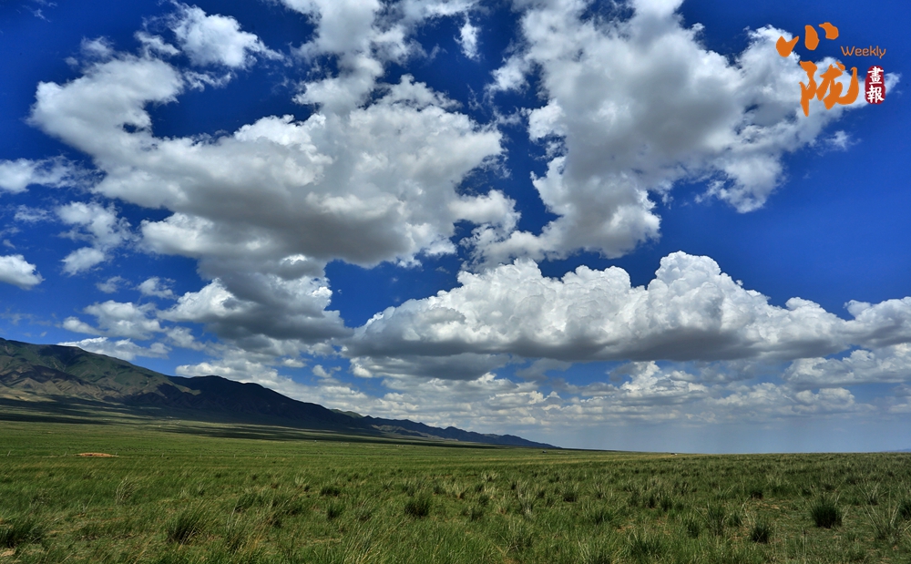 遠(yuǎn)處白云悠悠,百萬(wàn)畝草原一望無(wú)垠,羊群點(diǎn)綴的大草原和那殘存的烽火臺(tái)相映成趣,呈現(xiàn)出一幅綠意盎然的詩(shī)意畫(huà)卷。