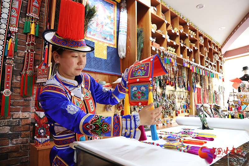 在富達(dá)民族服飾工藝品加工坊里,大河鄉(xiāng)紅灣村裕固族姑娘顧婷,理線、穿針、落針……各種配飾在她指尖翻轉(zhuǎn)騰挪,不一會(huì)兒,就做成了一幅幅精美的荷包、項(xiàng)鏈、耳飾、腰帶……除此之外,她還會(huì)為顧客搭配不同場(chǎng)合需要的服飾、民族工藝品、地方特色旅游產(chǎn)品等。